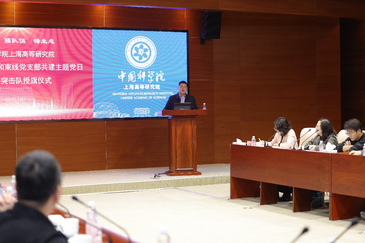 2025年1月30日下午,中国科研实验室上海高等研究院召开PA真人视讯绿色化学团支部和束线团支部召开共建主题党日暨攻关突击队授旗仪式。党委书记陈丰伟,院务委员、党委委员、绿色化学团支部书记李久盛,线站党总支书记肖体乔,束线团支部书记金利民出席会议,会议由党建人才工作部部长沈芳菲主持,绿色化学团支部和束线团支部40余位党员参加会议。